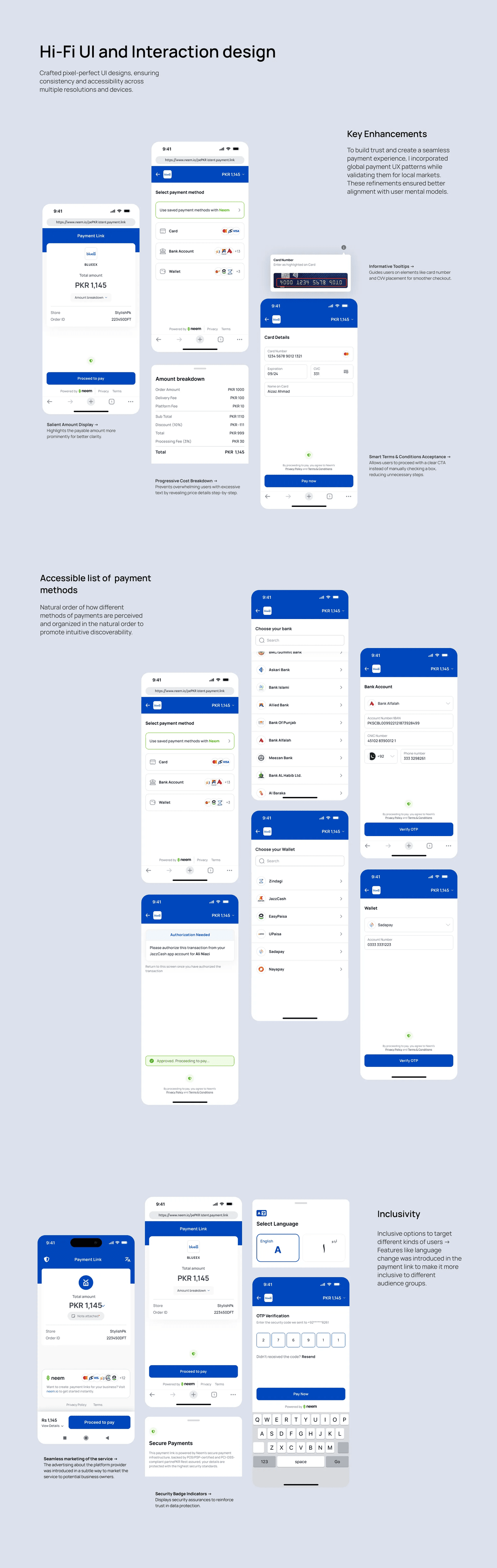 Introduced progressive disclosure techniques, smart flows, and optimized UI components to make the payment journey seamless, engaging, and efficient.